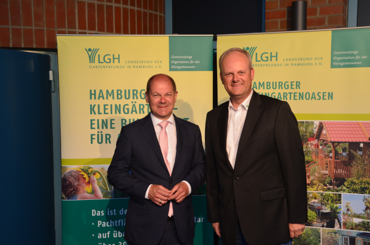 Der Bürgermeister nannte Hamburgs Kleingärten „ein Erfolgsmodell“, weil sie zum einen auch den Hamburgerinnen und Hamburgern eine kleine grüne Oase ermöglichen, die nicht viel Geld haben, zum anderen dazu beitragen, dass Hamburg mit 28 Prozent Grünflächen Deutschlands grünste Metropole sei. Und nicht nur das! Olaf Scholz erklärte den Anwesenden, dass Hamburgs Kleingärten zudem auch ein Zukunftsmodell seien. So sollen Kleingartenanlagen als Frischluftschneisen zukünftig noch besser an das öffentliche Wegenetz angeschlossen werden, um von allen Hamburgerinnen und Hamburgern als Spazierweg oder Grünanlage genutzt werden zu können. Und auch unter dem Umweltschutzaspekt haben die Kleingärten einen großen Wert, sodass sich neue Möglichkeiten der Stadtentwicklung eröffnen. Gerade erarbeitet der LGH mit der Behörde für Umwelt und Energie ein Konzept, wobei Ausgleichsflächen für den Naturschutz mit neuen Kleingartenanlagen kombiniert werden sollen. Daraus ergebe sich eine Win-win-Situation für die Stadt, die Bürgerinnen und Bürger, die Kleingärten mit ihren Gärtnerinnen und Gärtnern und die Natur.